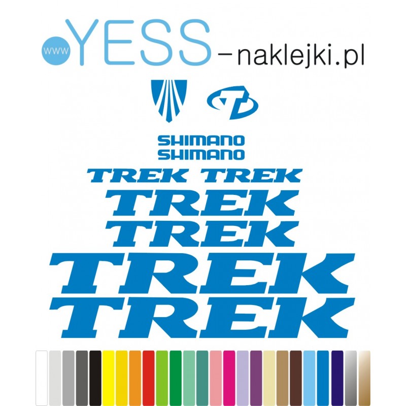 TREK SHIMANO niebieskie naklejki na rower gravel, górski, mtb, szosowy, crossowy, trekkingowy, elektryczny, mtb, YESS Naklejki Zobacz większe